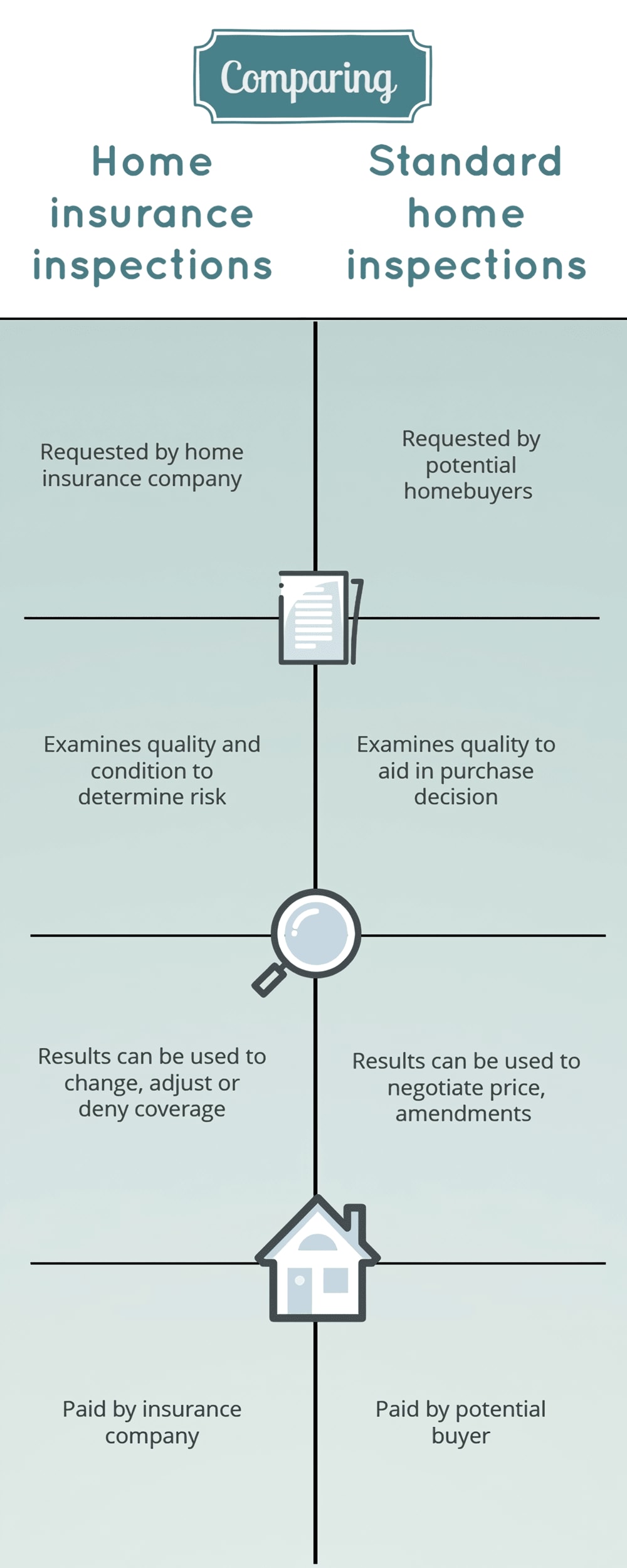 Here is a basic guide comparing home insurance inspections and standard inspections: